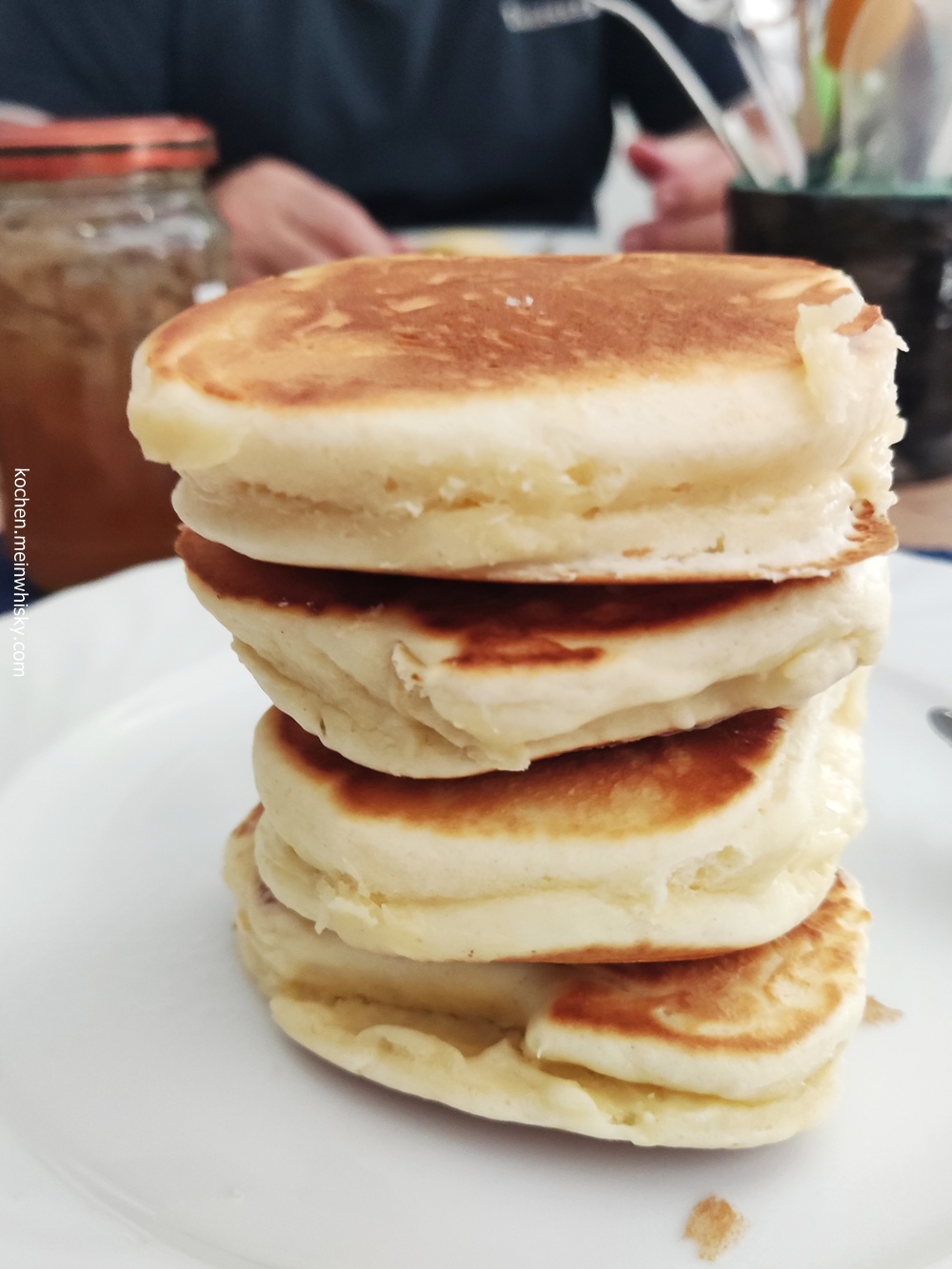 Drop Scones sind keine Scones im landläufigen Sinne, sondern eher das, was wir als Pfannkuchen bezeichnen würden. Durch die Verwendung von viel Backpulver gehen sie aber sehr auf. In Großbritannien arbeitet man viel mit Weinstein-Backpulver, in diesem Rezept wird es mit dem bei uns häufiger verwendeten „normalen“ Backpulver kombiniert. Der Unterschied zwischen den beiden ist das darin verwendete Säuerungsmittel, das benötigt wird, um das Natron seine Triebkraft entwickeln kann. In Weinstein-Backpulver ist dafür Weinsteinsäure enthalten, im meist etwas günstigeren handelsüblichen Backpulver Phosphat.